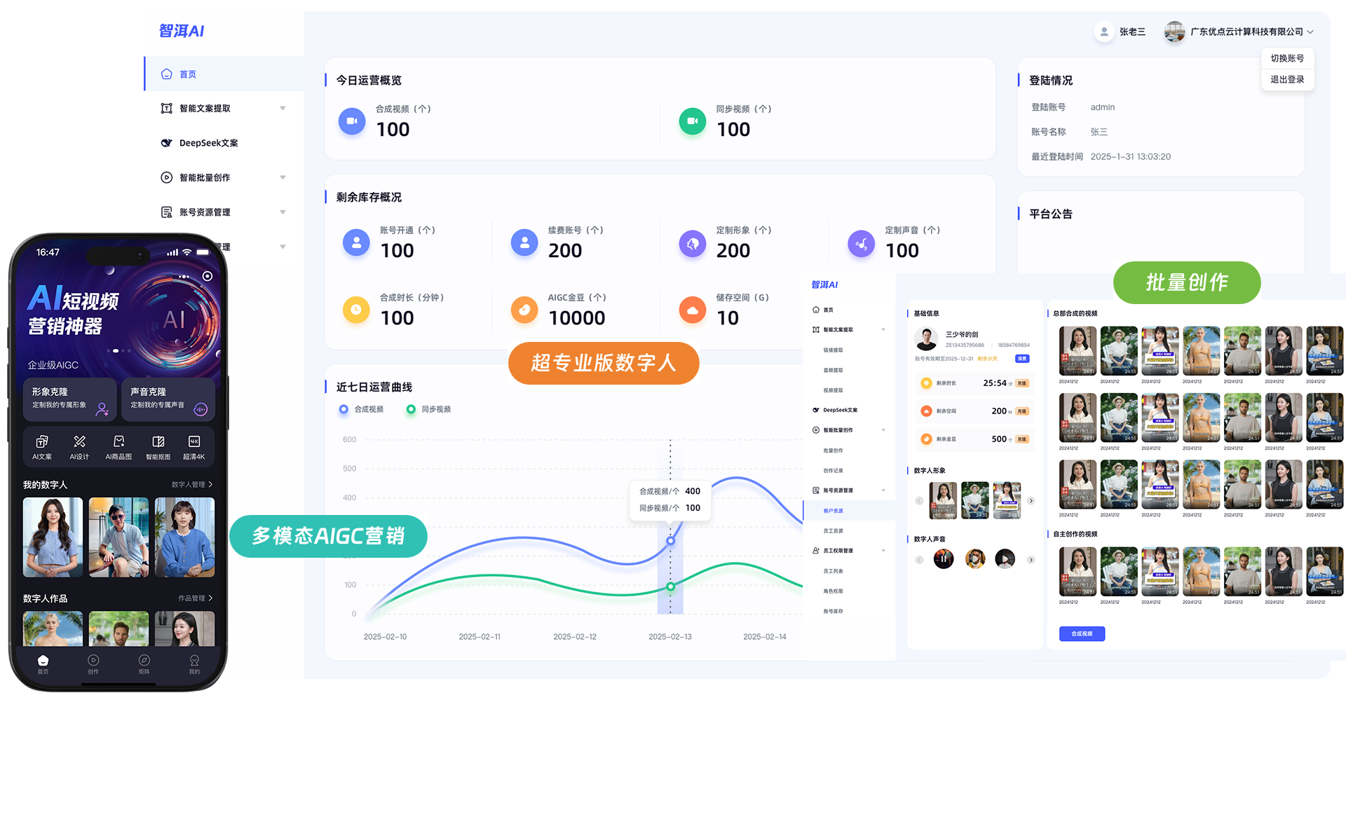 智洱AI专注服务品牌型中小企业,助力企业运用AI的方式解决企业业绩下滑、经销商流失的问题,提供AIGC多模态营销能力和超专业版AI数字人,针对经销商流量下滑、获客困难以及短视频创作门槛高、难以持续的痛点,智洱AI提供批量创作功能,支持总部为经销商批量生成每天100条超专业版数字人短视频,实现总部-经销商营销共振,助力企业实现招商赋能的目标,目前已服务超过300家品牌企业。