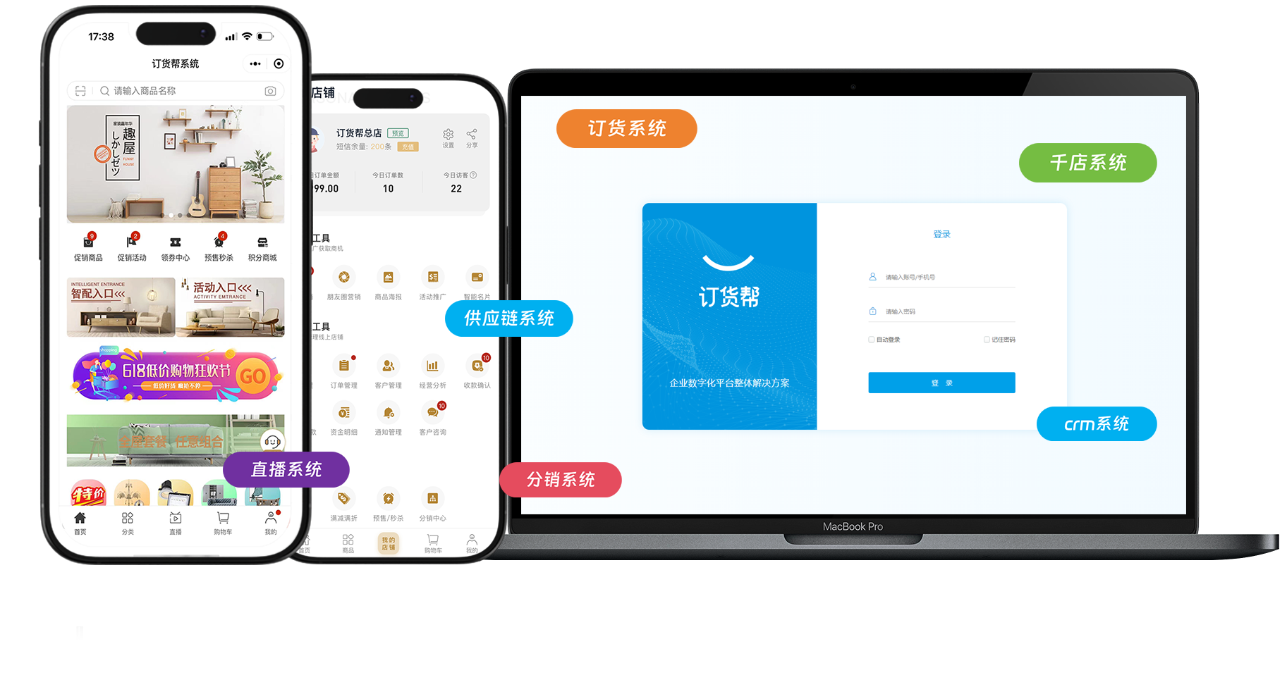 订货帮致力于企业S2B2C数字化平台整体解决方案,提出以企业为中心,帮助企业搭建自主的企业云、经销商云和供应链云,运用八大系统“订货系统、CRM系统、供应链系统、千店系统、直播系统、分销系统、AI系统、分账系统”全场景链路助力企业数字化升级,赋能企业、货通天下,目前已服务超过3000家制造企业和300万家下游商贸企业,付费企业超过10万家。